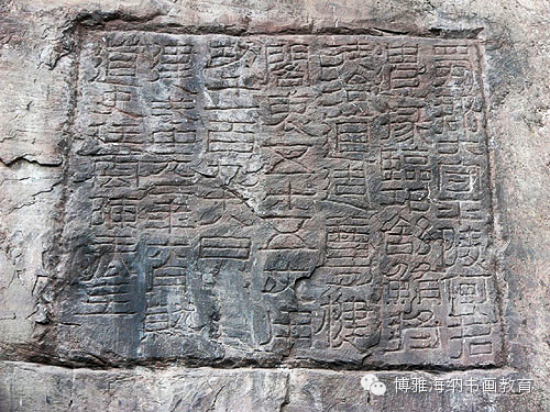 在摩崖石刻中(刻在山崖上的文字)尤以《石门颂》等为最著名,书法家视为“神品”。于此同时蔡鲨的《嘉平石经》达到了恢复古隶 、胎息楷则的要求。而碑刻是体现时代度与韵的最主要的艺术形式。其中以《封龙山》、《西狭颂》、《孔宙》、《乙瑛》、《史晨》、《张迁》、《曹全》诸碑尤为后人称道仿效。可以说,每碑各出一奇,莫有同者。至於瓦当玺印、简帛盟书则体现了艺术性与实用性的联姻。