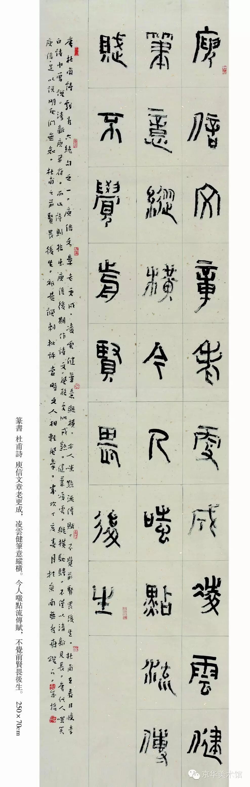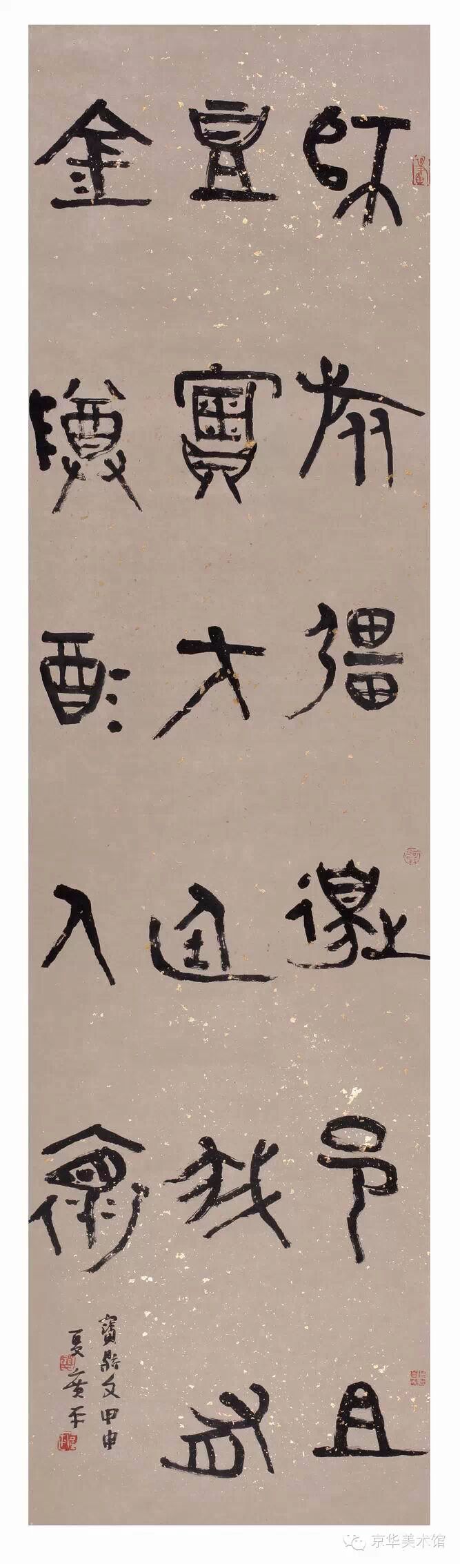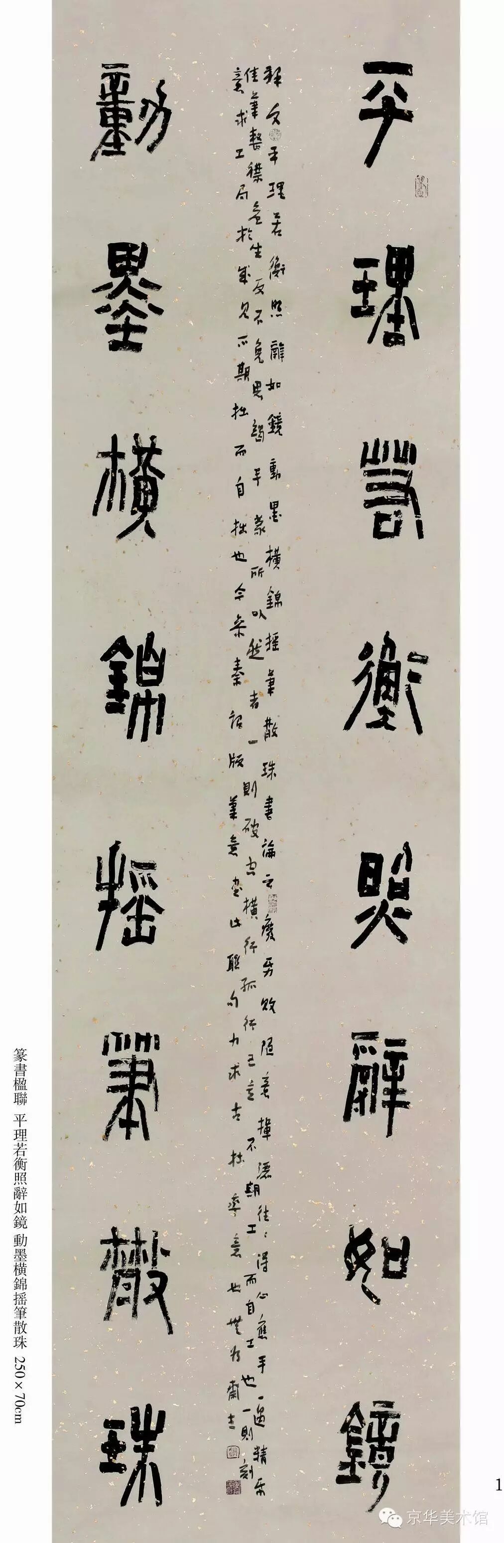 刘月卯:广平兄早年以章草名世,数次在全国书法展览摘金夺银,其章草用笔简约、古朴、灵动,逸气盈楮,自成家数,堪称国内章草名家之翘楚。近年又广收博取,钟情于大篆、汉碑,在隶书创作上斐然有成,将篆书笔法与结体融汇其中,悄然无痕,古意盎然,别具新面,其隶书天成中自有“长河落日圆”之境。(中国书协理事)